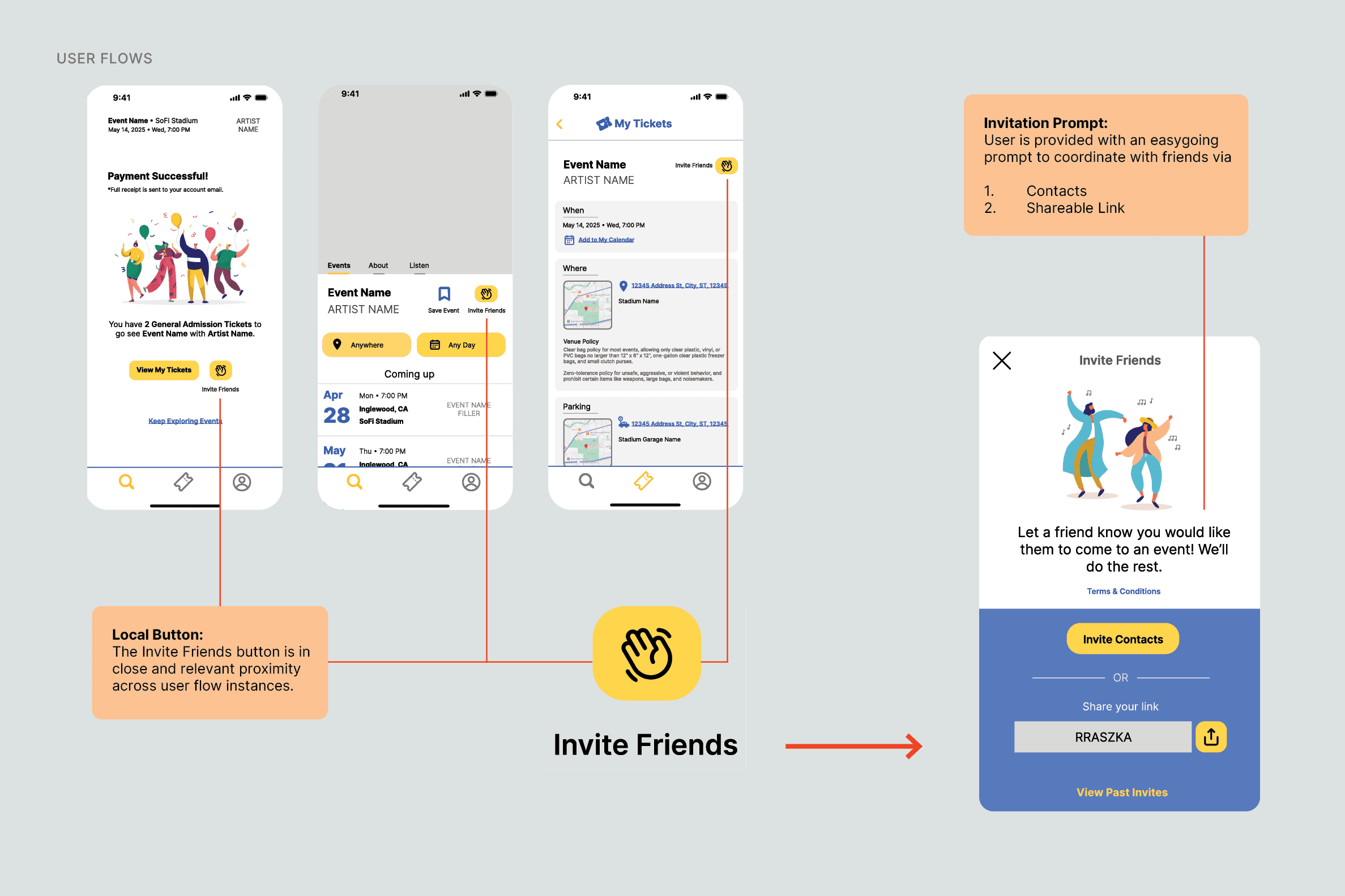 A full redesign modernizing the visual experience increasing event discovery, centralizing information, and introducing a native invitation feature that alleviates the logistics of sharing ticket information with friends.